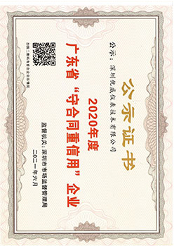 公示證書(shū):廣東省守合同重信用企業(yè)